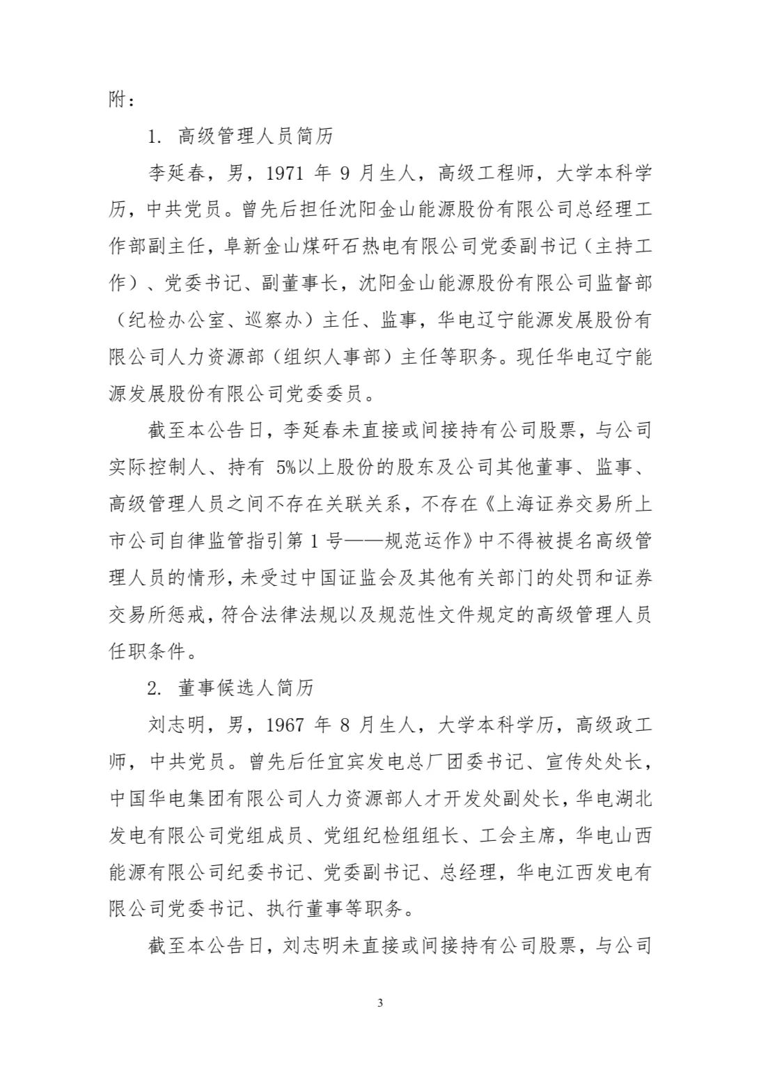李延春任華電遼寧能源發(fā)展股份有限公司(以下簡(jiǎn)稱(chēng)“華電遼能”)副總經(jīng)理。劉志明為華電遼能董事。