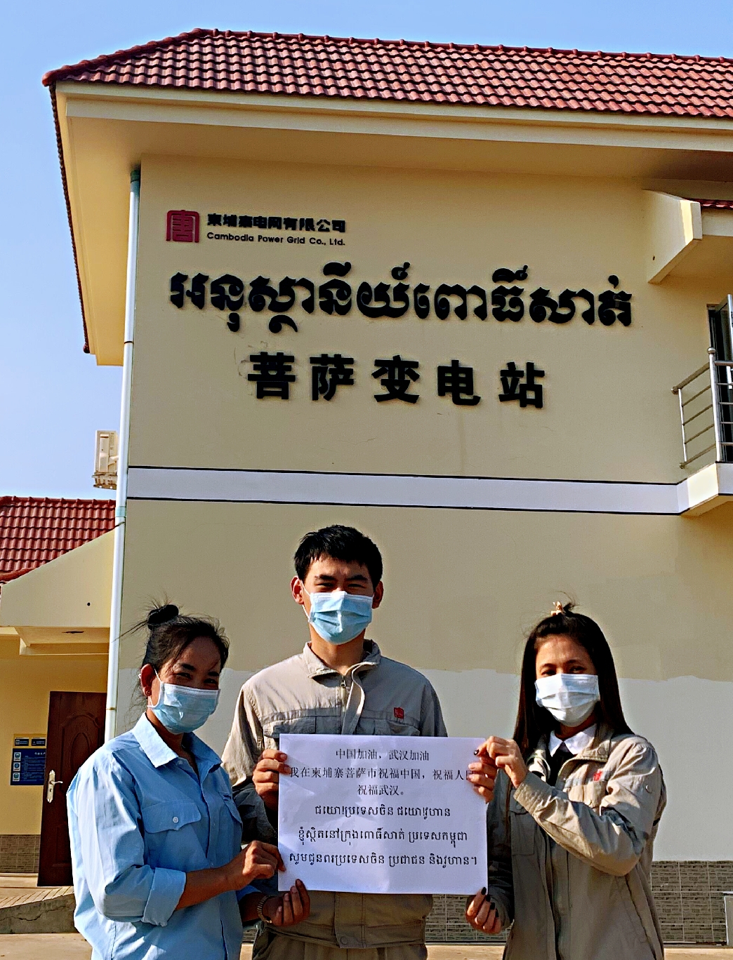 大唐東投水柬網(wǎng)職工在柬埔寨祝福祖國,祝福武漢。春天已經(jīng)到來,勝利就在眼前。(詹青山/攝)