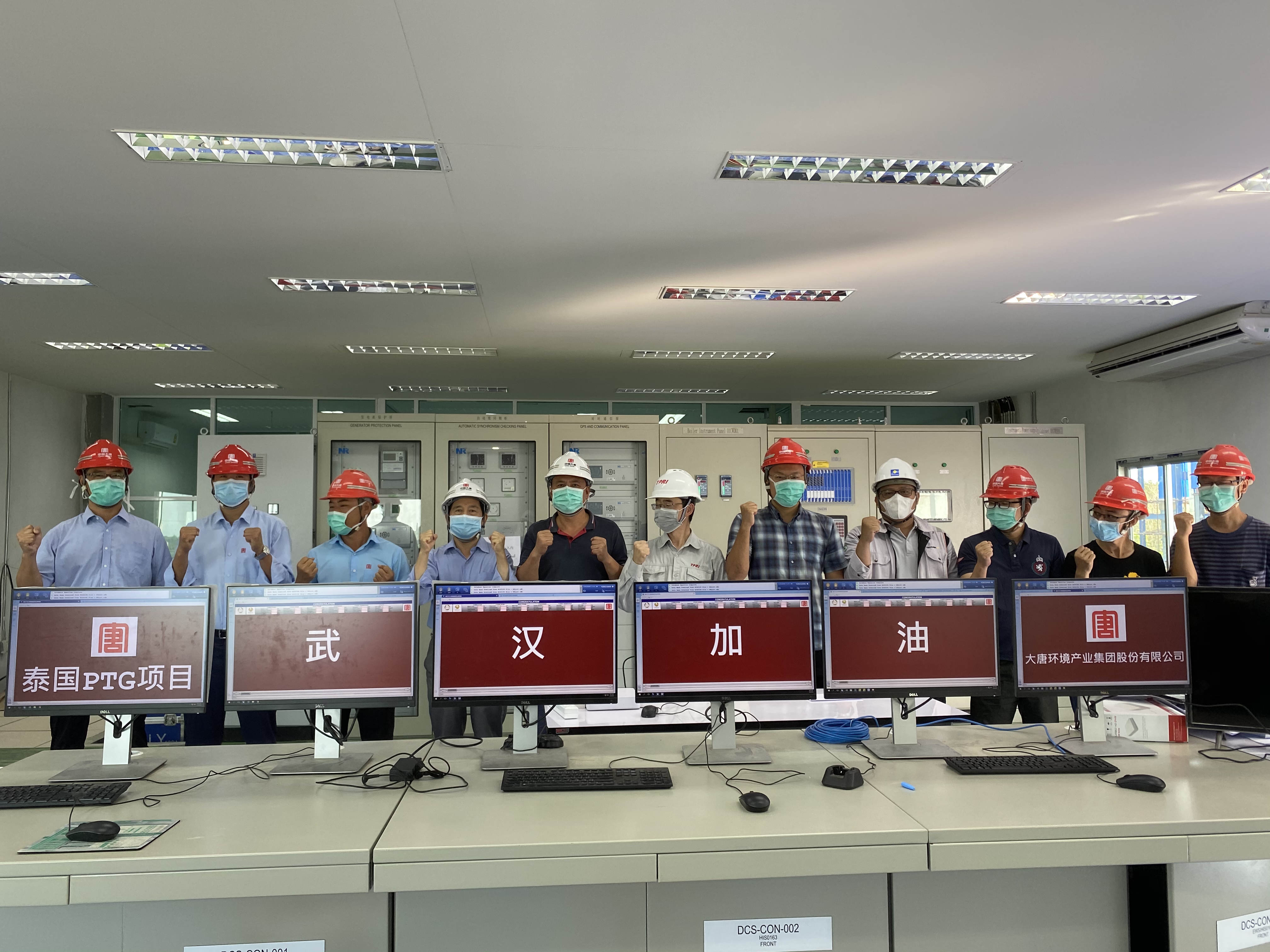 正在建設(shè)中的大唐環(huán)境產(chǎn)業(yè)集團泰國ptg項目的中泰職工表達(dá)共同心愿。(胡濱/攝)
