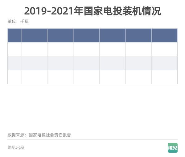 接下來(lái)看2019-2021年五大發(fā)電集團(tuán)分類(lèi)裝機(jī)情況變化表。