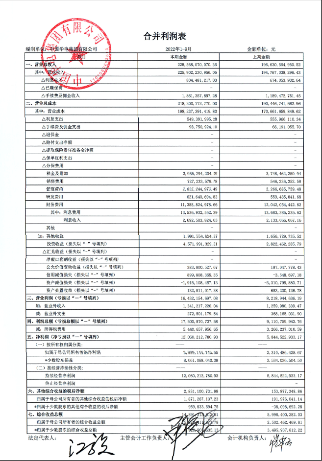 華電集團(tuán)2022年三季財務(wù)報表
