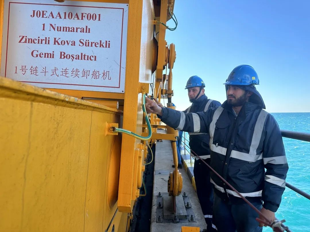 上海電力土耳其胡努特魯電廠(chǎng)員工正檢查卸船機(jī)工作情況