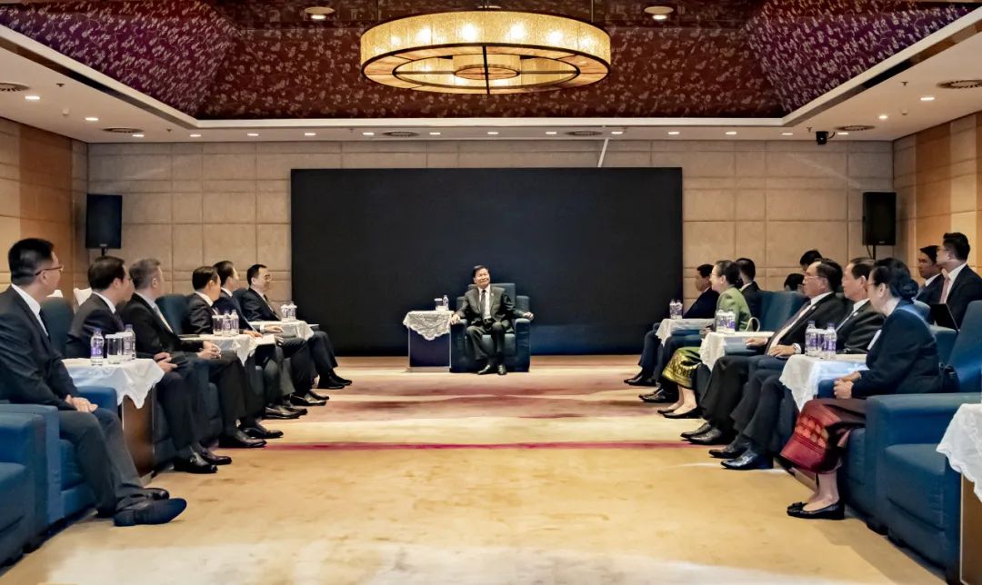 中國大唐黨組成員、副總經(jīng)理彭勇,老撾副總理兼外交部部長沙倫賽·貢瑪西,老撾中央辦公廳主任坎瑪尼·彭謝娜,中老合作委員會主席塞斯納參加會談。