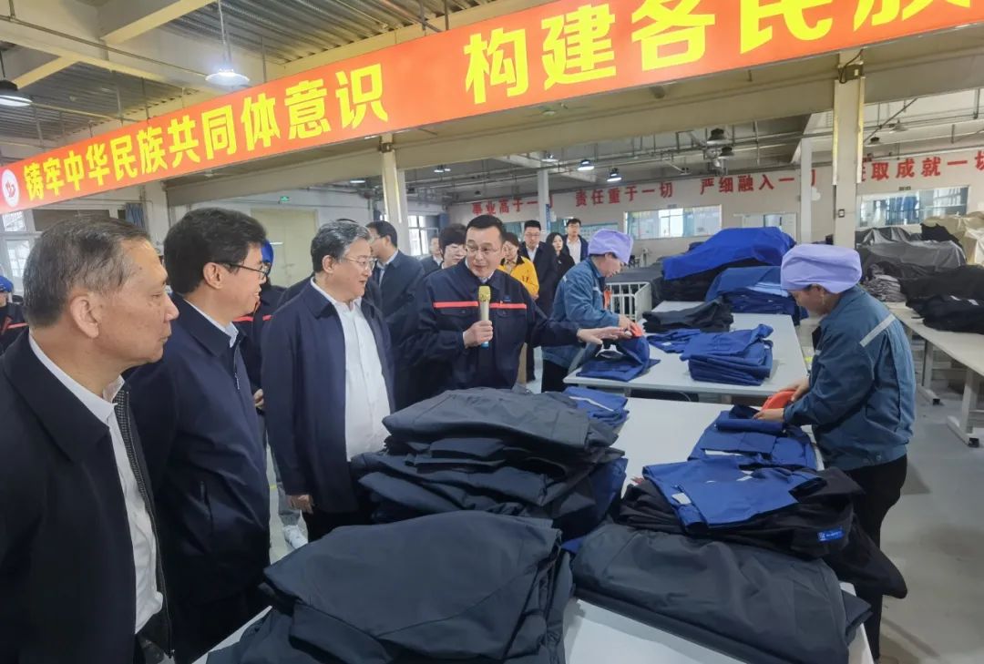 在寧夏同心(中核)清潔能源產業(yè)園,余劍鋒先后參觀了英利能源光伏組件全自動智慧化生產線、同心防護科技公司服裝生產車間,詳細了解了工藝流程、設施設備、企業(yè)黨建和生產經營等情況,并聽取了中核匯能引進中核熱鹽、上能電氣等產業(yè)落地情況,充分肯定了中核集團“六新一體”新能源產業(yè)幫扶格局對同心縣清潔能源產業(yè)鏈建設的引領作用。同時,他還鼓勵當地職工要堅定發(fā)展信心,“幸福是奮斗出來的!”