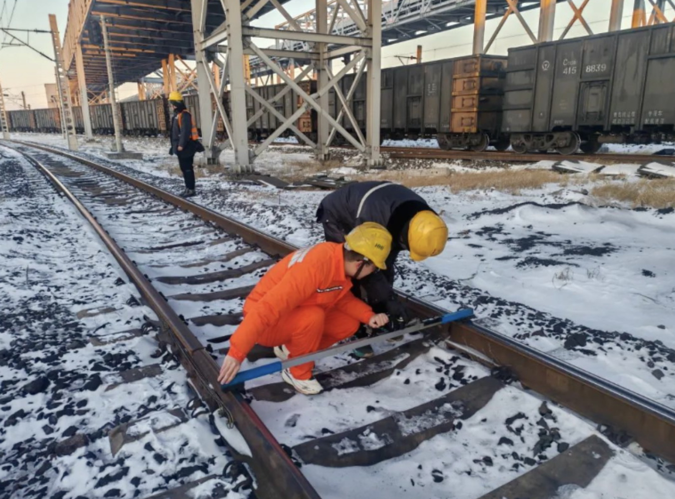 在河北唐山,華電煤業(yè)曹妃甸儲(chǔ)運(yùn)鐵路調(diào)度對(duì)總長(zhǎng)5.2公里的公司鐵路專(zhuān)用線(xiàn)進(jìn)行巡查,為確保進(jìn)港列車(chē)行車(chē)安全,曹妃甸儲(chǔ)運(yùn)強(qiáng)化現(xiàn)場(chǎng)盯控,加強(qiáng)對(duì)道岔尖軌、信號(hào)指示燈等關(guān)鍵部位巡檢力度,確保列車(chē)順利集港。
