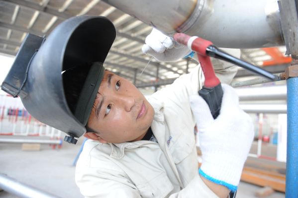 中核集團全國勞模、大國工匠、核級焊工未曉朋在進行焊接任務(wù)