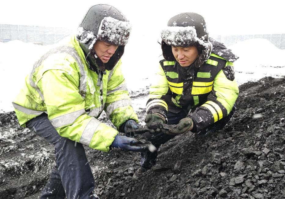 七臺(tái)河發(fā)電公司燃料戰(zhàn)線人員檢查燃煤冰凍情況