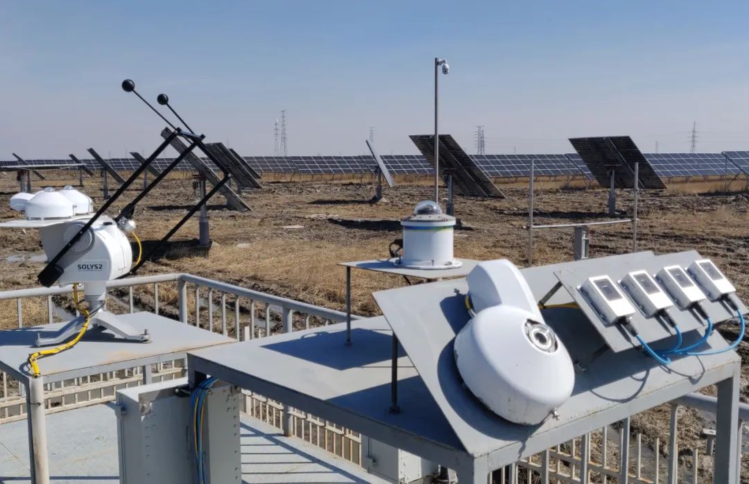 ▲國家光伏、儲能實證實驗平臺(大慶基地)布置氣象站,主要用于監(jiān)測當(dāng)?shù)剌椪铡囟?、光譜紫外、風(fēng)速風(fēng)向等氣象數(shù)據(jù)。