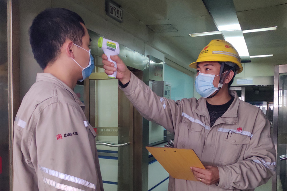 檢測體溫 方劍學(xué)是大唐華銀株洲發(fā)電公司發(fā)電部的一名集控運行主操,每天他上班都要經(jīng)過兩次體溫測量和佩戴口罩檢查。在疫情發(fā)生的第一時間,該公司迅速落實戰(zhàn)“疫”保電工作要求,實行生產(chǎn)區(qū)崗哨、集控室準(zhǔn)入制,凡是進入公司區(qū)域的人員必須先接受檢查,做到外防輸入、內(nèi)防傳播,確保職工生命安全和機組發(fā)電安全。