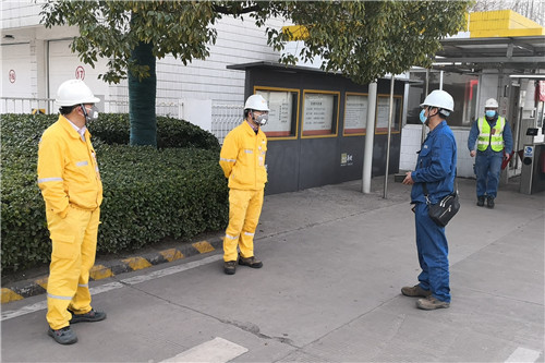 清晨7:00,檢查人員在綜合辦公樓一樓集合。陳超虎對此次監(jiān)督檢查方式、內(nèi)容、重點及分工進(jìn)行了詳細(xì)布置。隨后,檢查人員分為兩組,對生產(chǎn)現(xiàn)場疫情防控措施執(zhí)行情況和人員進(jìn)出公司疫情防控措施、人員到崗情況進(jìn)行檢查。