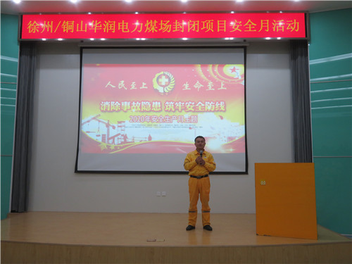 6月4日,徐州/銅山華潤電力有限公司(以下簡稱“公司”)煤場封閉項目安全生產(chǎn)月主題活動在綜合樓一樓階梯教室舉行,公司技術總監(jiān)張峰、華潤電力江蘇大區(qū)EHS部毛俊杰、公司EHS部部長杜長明、技術部副部長張建華等人到場參加。