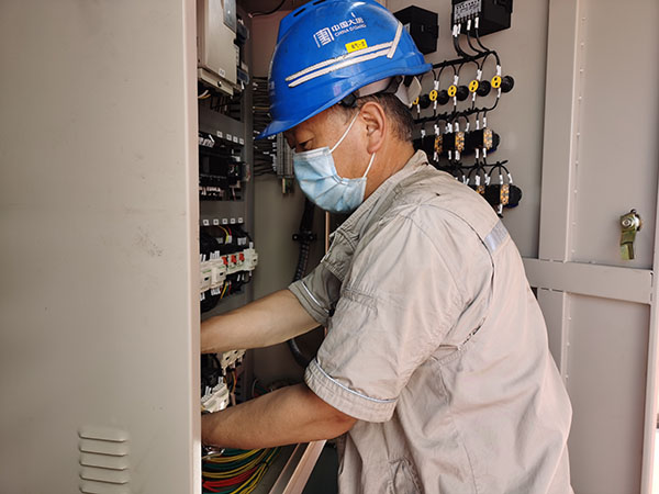 工作人員測量配電箱內接地線的泄露電流