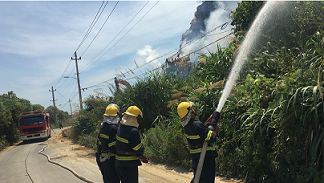 中國電力網(wǎng)訊 7月23日,華潤溫州電廠外3公里的北嶺山上濃煙滾滾。10時32分,電廠消防隊接到地方的增援求救后,火速組織一輛消防車、五名消防隊員奔赴現(xiàn)場救援。