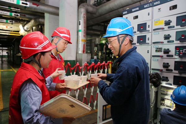 “真是想啥來啥,天熱了,正想喝點冰綠豆沙降降溫呢。”“夏日里的第一杯綠豆沙,真甜!”奮戰(zhàn)在檢修現(xiàn)場的一線員工開心地接過綠豆沙,在品嘗的過程中得到了片刻休息,感受到了絲絲涼意和滿滿的甜和暖,“幸福指數(shù)”一路攀升。