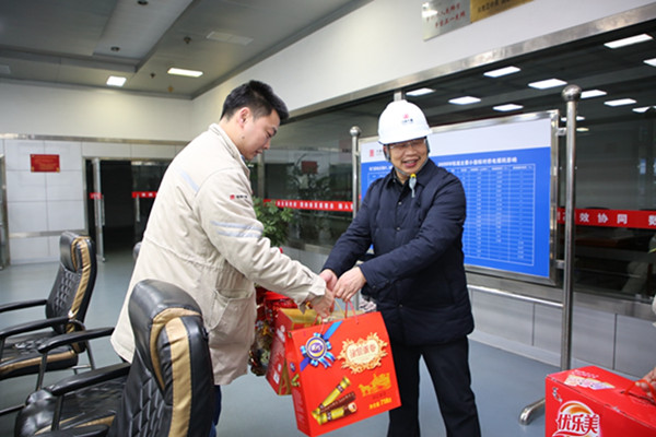 為有序開展慰問,該公司分兩批次進(jìn)行除夕慰問。當(dāng)天下午對堅守在循泵房、尾水、加油站、石電賓館、灰?guī)斓葝徫坏膯T工進(jìn)行了節(jié)日慰問。晚上11時,慰問組“兵分兩路”先后來到發(fā)電集控室、燃運集控室、循泵房、采樣室、燃料監(jiān)察站、化學(xué)值班室、脫硫值班室、保安崗哨等處,慰問了節(jié)日期間堅守崗位的同志們,給他們送上慰問品和慰問金。每到一處,公司領(lǐng)導(dǎo)都與值班人員親切握手交談,詳細(xì)詢問了機(jī)組的負(fù)荷情況、來煤情況,叮囑大家全力確保節(jié)日期間機(jī)組的穩(wěn)定運行,確保度過祥和、平安的節(jié)日。