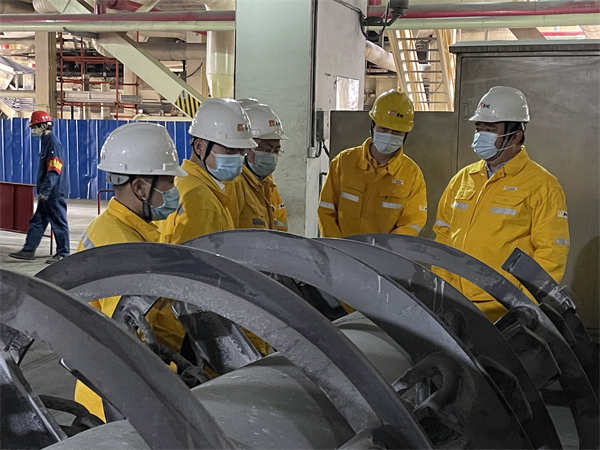在鍋爐、汽輪機(jī)等檢修現(xiàn)場(chǎng),薛總與各項(xiàng)目負(fù)責(zé)人、檢修人員進(jìn)行深入交流,了解檢修項(xiàng)目的施工進(jìn)度、節(jié)點(diǎn)完成情況、現(xiàn)場(chǎng)安全措施執(zhí)行情況等,詳細(xì)了解現(xiàn)場(chǎng)施工重點(diǎn)、難點(diǎn)問(wèn)題。他要求各項(xiàng)目負(fù)責(zé)人要充分發(fā)揮黨支部、黨員先鋒隊(duì)、黨員示范區(qū)的引領(lǐng)作用,在保證安全的前提下,克服疫情帶來(lái)的不利影響,嚴(yán)格按照公司的節(jié)點(diǎn)計(jì)劃,保質(zhì)保量完成本次檢修工作;要求做好設(shè)備解體發(fā)現(xiàn)問(wèn)題的分析和研究,制定出有針對(duì)性的措施,保證設(shè)備長(zhǎng)治久安;對(duì)設(shè)備管理專(zhuān)業(yè)人員發(fā)揮工匠精神和主人翁精神,自己制造專(zhuān)用工具、自己發(fā)揮技術(shù)經(jīng)驗(yàn)、減少外委修理、降低檢修費(fèi)用的做法給予肯定,要求做好這種精神的傳承和技術(shù)的傳幫帶。