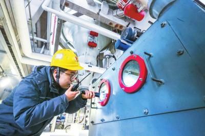 2月26日,國能長源荊州熱電有限公司巡檢人員正在檢修機(jī)器。