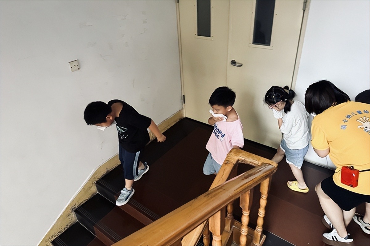 當(dāng)天下午15時(shí)30分,暑托班餐廳響起了警報(bào)聲,托班老師急忙前去查看,發(fā)現(xiàn)了安全門附近的起火點(diǎn),立即撥打119電話,并迅速組織師生們從另兩個(gè)通道緊急疏散。孩子們用濕手帕掩住口鼻、彎腰俯身,以最快速度有序有組織地向樓下撤離。在龍?jiān)聪腊踩?wù)有限公司6名義務(wù)消防員的指揮下、該公司4名志愿者的協(xié)助下,全體師生用時(shí)2分鐘安全有序地疏散到指定地點(diǎn)。到達(dá)安全區(qū)域后,老師們迅速清點(diǎn)人數(shù),維持好現(xiàn)場秩序,并向指揮員匯報(bào)人數(shù)與撤離情況。
