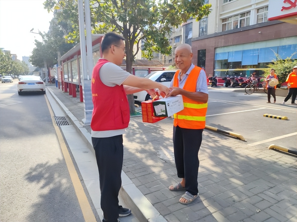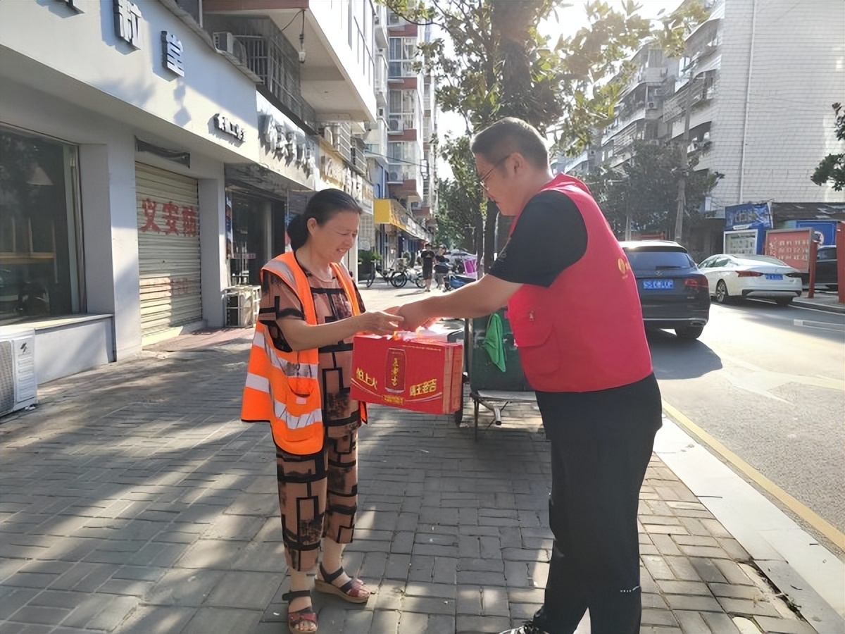 活動中,志愿者們首先對他們不畏高溫天氣,仍然堅守崗位工作、默默付出致以誠摯的敬意和感謝。隨后,將牛奶、涼茶、礦泉水等慰問物資送到一線環(huán)衛(wèi)工作人員手中,同時囑咐大家要提高自?;ケR庾R,做好防暑降溫措施,確保勞逸結(jié)合、身體康健。此次活動,讓堅守在烈日與高溫下的環(huán)衛(wèi)工人們感受到夏日的絲絲清涼。