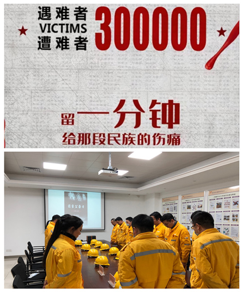 2020年12月13日,是第七個南京大屠殺死難者國家公祭日。南京化學(xué)工業(yè)園熱電有限公司(以下簡稱公司)現(xiàn)場運行人員在班組安全活動開始前,為緬懷同胞,全體起立默哀一分鐘。