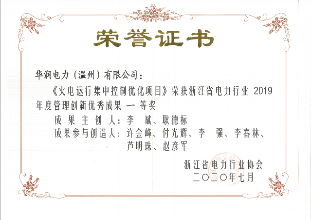 中國電力網(wǎng)訊 近日,由浙江省電力行業(yè)協(xié)會(huì)主辦的2019年度管理創(chuàng)新優(yōu)秀成果評(píng)審結(jié)果揭曉,華潤溫州電廠《火電運(yùn)行集中控制優(yōu)化項(xiàng)目》從200余項(xiàng)創(chuàng)新成果中脫穎而出,榮膺一等獎(jiǎng)。