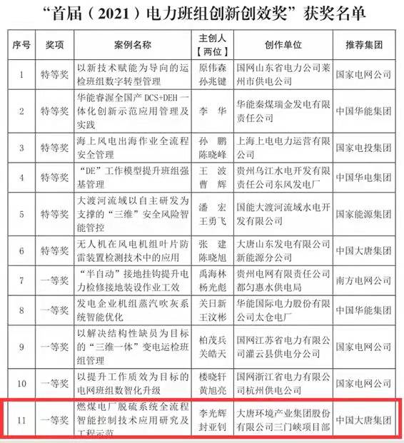 中國(guó)電力網(wǎng)訊 日前,由大唐環(huán)境特許經(jīng)營(yíng)分公司申報(bào)的“燃煤電廠脫硫系統(tǒng)全流程智能控制技術(shù)應(yīng)用研究及工程示范”項(xiàng)目在中國(guó)能源化學(xué)工會(huì)全國(guó)委員會(huì)舉辦的“首屆(2021)電力班組創(chuàng)新創(chuàng)效獎(jiǎng)”評(píng)選活動(dòng)中榮獲一等獎(jiǎng)。