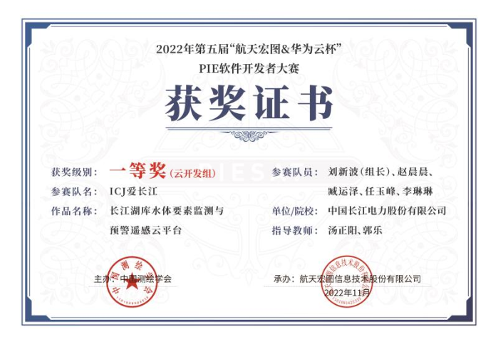 本網(wǎng)訊(馬一鳴 劉新波)近日,由中國(guó)測(cè)繪學(xué)會(huì)主辦的第五屆“航天宏圖&華為云杯”PIE軟件開發(fā)者大賽落下帷幕。經(jīng)過(guò)近五個(gè)月的激烈角逐,三峽集團(tuán)長(zhǎng)江電力自研項(xiàng)目“長(zhǎng)江湖庫(kù)水體要素監(jiān)測(cè)與預(yù)警遙感云平臺(tái)”斬獲一等獎(jiǎng)。