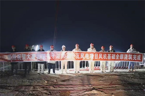 自項目開工以來,省公司及該廠領(lǐng)導(dǎo)多次到場指導(dǎo)工作,視察現(xiàn)場的同時積極協(xié)調(diào)解決項目資金、征地等難題,省公司工程建設(shè)部委派專業(yè)主管全程進行技術(shù)指導(dǎo)支持。為實現(xiàn)整體工期目標,工程管理部始終將工作重點聚焦在抓安全、保質(zhì)量、趕進度、控造價上,多次召開會議優(yōu)化施工方案,積極處理阻工問題,克服連續(xù)降雨天氣,挑戰(zhàn)高溫酷暑,協(xié)商解決材料供貨與圖紙設(shè)計問題,并應(yīng)對不利因素。除此之外對每一步工序進行嚴格質(zhì)量把關(guān)驗收,確保風(fēng)機地基驗槽、鋼筋加工安裝、上下錨板水平度控制、大體積混凝土澆筑養(yǎng)護等各環(huán)節(jié)工藝符合設(shè)計及施工規(guī)范要求,重點加強對風(fēng)機基礎(chǔ)混凝土保溫保濕養(yǎng)護、加強混凝土溫度監(jiān)測及二次灌漿工序銜接,及時掌握混凝土內(nèi)外溫差,為混凝土養(yǎng)護工作提供依據(jù),確?;炷潦┕べ|(zhì)量。