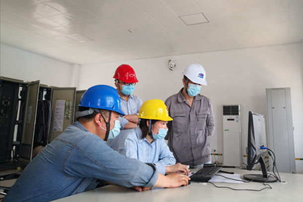 圖為該公司員工在遠(yuǎn)程試驗(yàn)凈水站排泥水處理系統(tǒng)。