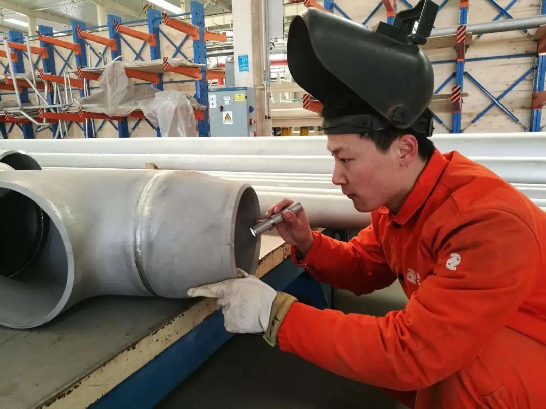 豆存印正在檢查焊縫。但對(duì)豆存印來(lái)說(shuō),他的焊接合格率早已實(shí)現(xiàn)100%,出于嚴(yán)謹(jǐn)性考慮,焊接完成后他還會(huì)用肉眼再檢查一遍焊縫是否合格,以確保沒(méi)有任何細(xì)微的瑕疵遺漏。