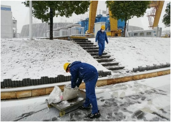 早在幾天前,一收到市氣象局發(fā)布的大雪預(yù)警信息后,楊坤就帶領(lǐng)著六值班組成員進(jìn)行相關(guān)重點區(qū)域的學(xué)習(xí)和操作。工作開始前,楊坤再三叮囑值內(nèi)成員要采取好防護(hù)保暖措施,預(yù)防風(fēng)寒感冒。大雪襲來后,楊坤第一時間帶領(lǐng)值內(nèi)成員在部門統(tǒng)籌安排下,前往生產(chǎn)現(xiàn)場清雪、撒鹽、鋪設(shè)防滑袋等相關(guān)安全保障措施。風(fēng)雪中,楊坤拿來了幾個大鐵鍬,在鍋爐12米的給煤機(jī)平臺上將凍上的冰面一片片敲裂,然后再順著雪一道鏟到通道的兩旁,最后撒上鹽,在相關(guān)區(qū)域鋪上麻袋。有人問他怎么做得這么熟練,他笑著說自己打小在東北的家鄉(xiāng)就干這些事。