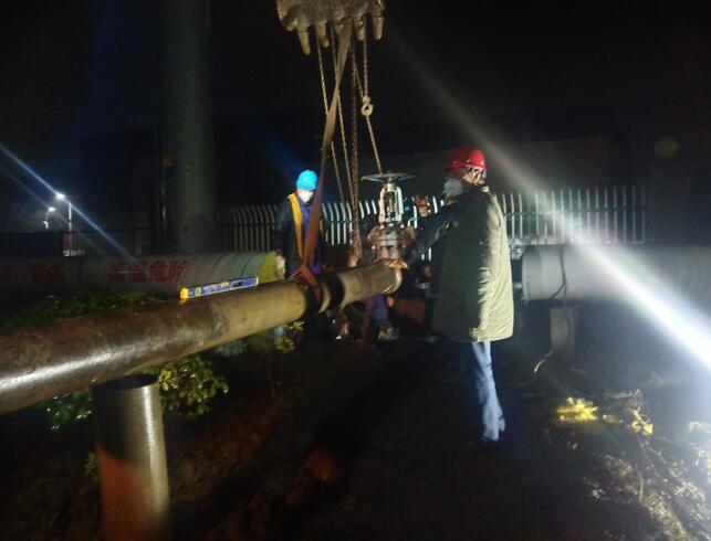 “方區(qū)長要求務(wù)必連夜搶修,確保盡快投產(chǎn)!現(xiàn)在這個非常時期,雙匯食品復(fù)產(chǎn)是重要的民生工程......”“不管風(fēng)雪多大,保證完成任務(wù)!”向當(dāng)?shù)卣畢R報得到反饋后,華電蕪湖公司迅速成立“攻堅隊”,按照一級搶險任務(wù)實施進(jìn)行:確定“改道引管供汽”方案、編制《廠外供熱至雙匯地埋管道消缺方案及安全技術(shù)措施》、組織施工人員及物料到位,連夜施工連夜開工,并由總工、副總工親自現(xiàn)場督陣,全力以赴推進(jìn)供暖缺陷搶修任務(wù)。