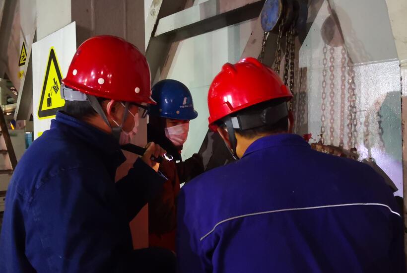 “目前來看,問題只可能是撈渣機(jī)底板與導(dǎo)輪間隙有問題或槽體內(nèi)刮板脫落,大家分頭重點排查這兩方面?!痹诖蠹颐H粺o措時,生產(chǎn)副總經(jīng)理徐光學(xué)一語點醒夢中人。鎖定“疑兇”,維護(hù)部副主任徐德剛迅速組織技術(shù)骨干研討。按照疫情防護(hù)需要,幾位專業(yè)行家距離一米以上,“吼”完了研討會,并在較短時間內(nèi)擬定出三個處理方案,但所有方案的前提均是“確定底板情況!”