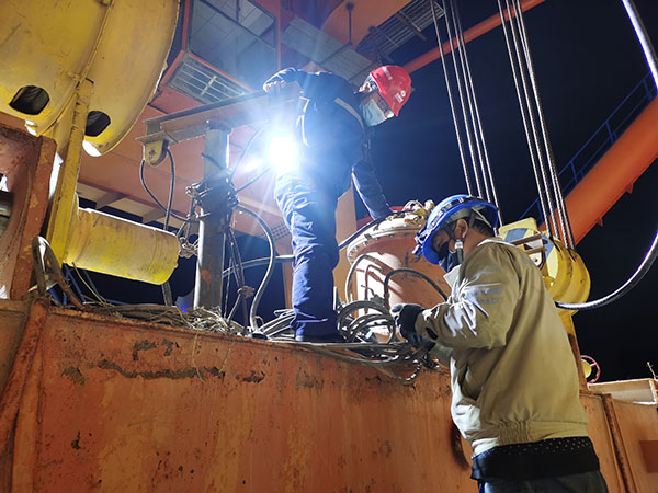 中國電力網(wǎng)訊 近日,內(nèi)蒙古大唐國際海勃灣水利樞紐開發(fā)有限公司在進行2號機組進水口檢修閘門落門工作時,因檢修工期緊張,著實不巧,落門安排在了晚上,這看似容易的“閘門一提一落”,卻沒有想象中那么簡單,現(xiàn)場拉開了一段快準狠的“戰(zhàn)斗劇情”。