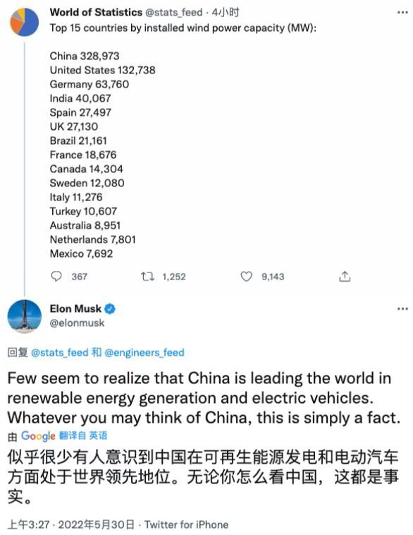 5月30日消息,特斯拉公司CEO埃隆·馬斯克回復(fù)網(wǎng)友時(shí)表示,似乎很少有人意識(shí)到中國在電動(dòng)汽車和可再生能源發(fā)電方面領(lǐng)先世界,這是事實(shí)。