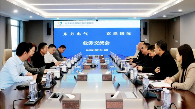 2023年1月31日,北京能源國際控股有限公司總裁朱軍在北京會見東方電氣風電股份有限公司總經(jīng)理葛紅兵一行,雙方就新能源領域深入合作進行座談交流。東方電氣風電研究院副院長曾志,營銷中心副主任駱麗竹、張軍,營銷中心北方大區(qū)總監(jiān)梁雄;京能國際副總裁賈耕、王六虎,安全生產(chǎn)總監(jiān)周國,計劃經(jīng)營部總經(jīng)理劉吉廣等相關人員參加會議。