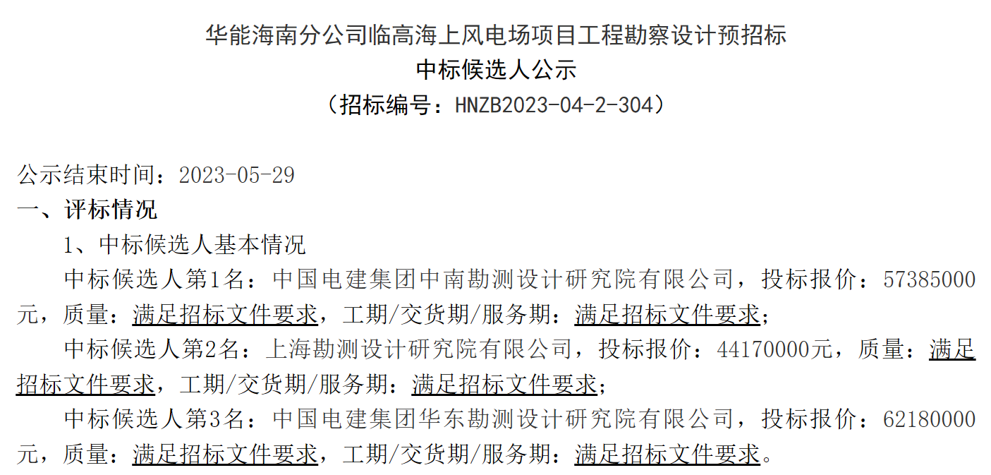 公告顯示,第一中標(biāo)候選人:中國(guó)電建集團(tuán)中南勘測(cè)設(shè)計(jì)研究院有限公司,投標(biāo)報(bào)價(jià):57385000元。第二中標(biāo)候選人:上??睖y(cè)設(shè)計(jì)研究院有限公司,投標(biāo)報(bào)價(jià):44170000元。第三中標(biāo)候選人:中國(guó)電建集團(tuán)華東勘測(cè)設(shè)計(jì)研究院有限公司,投標(biāo)報(bào)價(jià):62180000元。