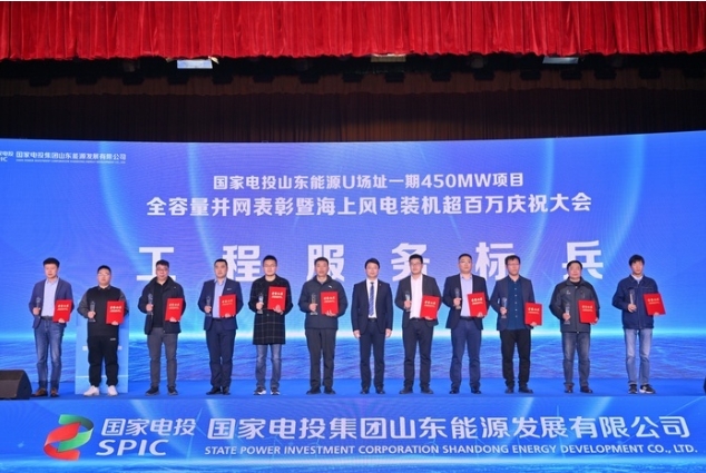 大會期間,國家電投山東能源海上風電公司相關負責人作項目全容量投產報告,大會為獲獎團隊和個人頒發(fā)獎牌和證書。
