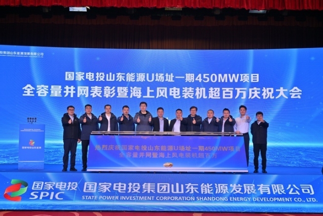 11月28日,國家電投山東能源U1場址一期450兆瓦海上風電項目全容量并網表彰暨海上風電裝機超百萬慶祝大會舉行。新黃河記者獲悉,國家電投山東能源有限公司“百萬千瓦級海上風電基地”建成,這是國家電投在魯首個百萬千瓦級海上風電基地。