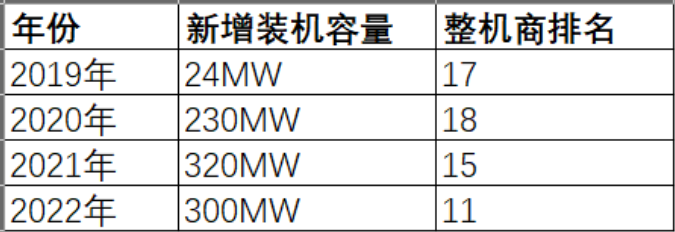 在華儀電氣正處在資本市場(chǎng)的水深火熱之時(shí),2020年退市并逐漸卸掉包袱的華銳風(fēng)電,近年來卻表現(xiàn)出強(qiáng)勁的增長(zhǎng)勢(shì)頭。2019-2022年,華銳風(fēng)電新增裝機(jī)排名不斷向上提升。