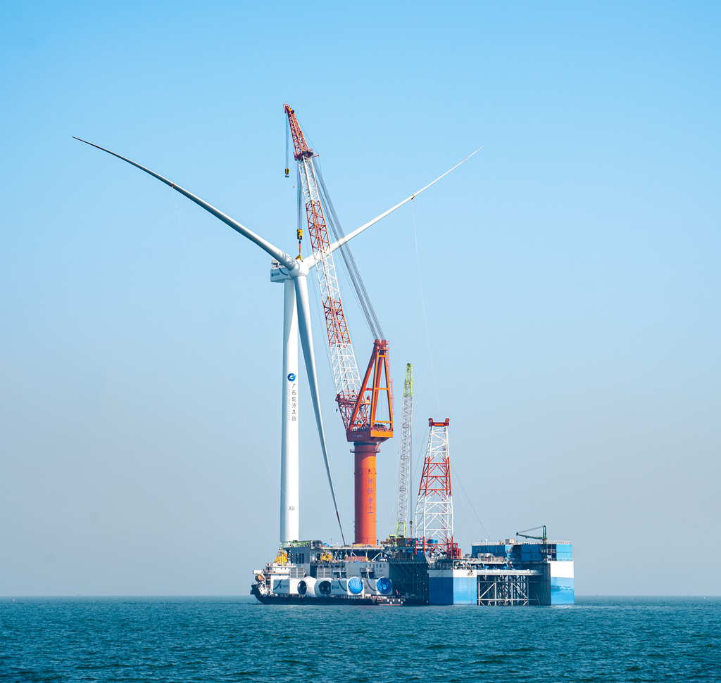 該項目于2023年3月全面啟動,6月海上工程全面開工,8月首臺風(fēng)機(jī)完成吊裝,11月完成海上升壓站吊裝,2024年1月由南方電網(wǎng)廣西電網(wǎng)公司建設(shè)的220千伏海上風(fēng)電送出線路工程送電投產(chǎn),為海上風(fēng)電項目并網(wǎng)發(fā)電提供有力的能源通道支撐。