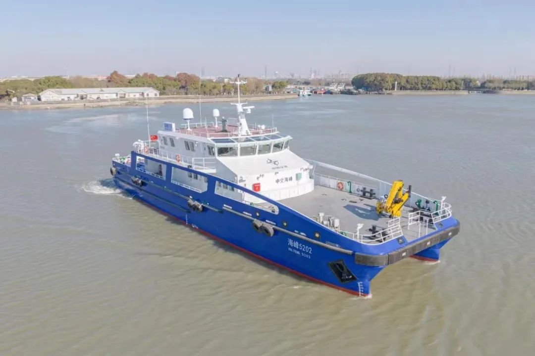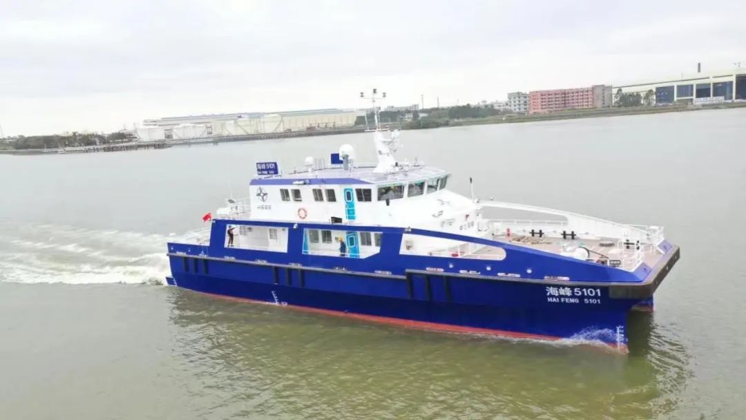 其中,“海峰5101”是中交海峰風(fēng)電首制全鋁合金高速風(fēng)電運(yùn)維船。該船入級(jí)中國船級(jí)社,全鋁雙體半小水線面船型,總長33.2米,型寬10.8米,實(shí)船航速25.7節(jié),續(xù)航能力達(dá)到500海里,快速性好、耐波性優(yōu)異。