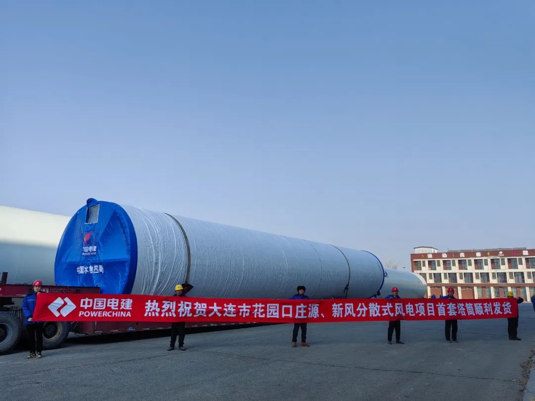 3月14日,由中國水電四局大連公司承制的大連市花園口莊源、新風(fēng)分散式風(fēng)電項目首套塔筒順利發(fā)貨。