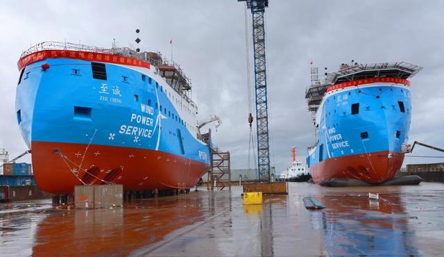 這兩艘SOV的下水,標志著我國在海上風電運維領域取得了重要進展,為我國海上風電開發(fā)走向深海邁出了關鍵一步。據(jù)悉,這兩艘SOV將應用于離岸40公里以外的大型風場,其中一艘將服務于上海電氣在江蘇東臺建設的300萬千瓦級海上風電項目,另一艘將服務于上海電氣在廣東陽江建設的200萬千瓦級海上風電項目。