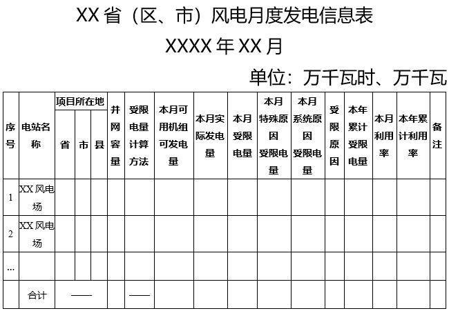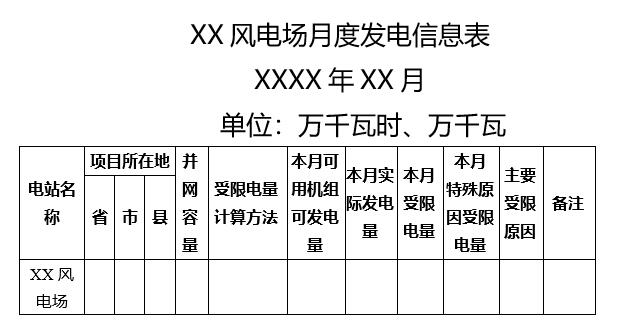 2. XX省(區(qū)、市)風(fēng)電月度發(fā)電信息表