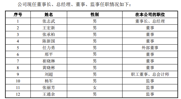 經(jīng)研究決定,聘任張志武擔任公司董事長、總經(jīng)理,聘任王宏新、陳新國、崔曉琳、黃曉彬、劉超擔任公司董事,聘任楊軍、張麗芳、王通余擔任公司監(jiān)事;陳遂卸任董事長,李亦倫卸任董事、總經(jīng)理,夏林泉卸任外部董事,王宏新卸任監(jiān)事。