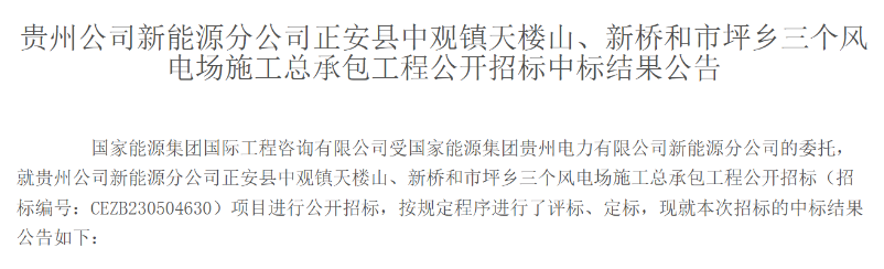 公告顯示,中國電建集團(tuán)貴州工程有限公司成功中標(biāo)該項目,中標(biāo)價格為29242.222800萬元。
