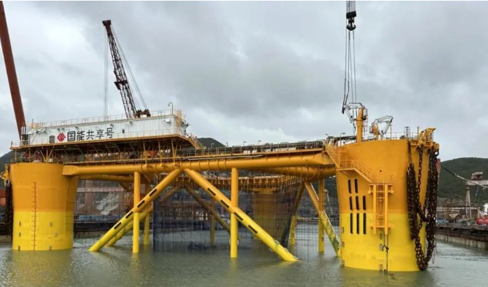 龍源福建浮式風機基礎項目為海洋牧場、光伏發(fā)電融合的半潛式基礎平臺科技項目,含漁業(yè)養(yǎng)殖設備設施、風力發(fā)電、光伏發(fā)電等。整個項目重達5000多噸,由振華重工完全自主設計、建造、調試。