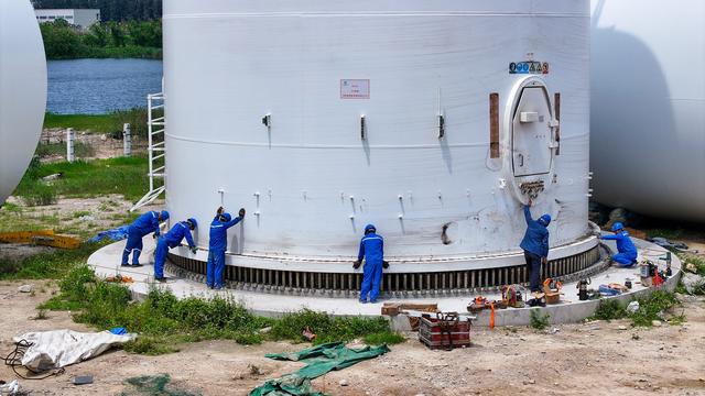 5月15日是全國(guó)低碳日。當(dāng)天,在位于廣東汕頭的全國(guó)首個(gè)風(fēng)電臨海試驗(yàn)基地,一個(gè)巨型風(fēng)電機(jī)組塔筒正在緊鑼密鼓地進(jìn)行吊裝。據(jù)介紹,該風(fēng)電機(jī)組為東方電氣風(fēng)電股份有限公司(以下簡(jiǎn)稱“東方電氣”)研制的機(jī)型,容量達(dá)18兆瓦,是目前全球已經(jīng)開始安裝的最大功率等級(jí)海上風(fēng)電機(jī)組,將于5月底開展并網(wǎng)測(cè)試。