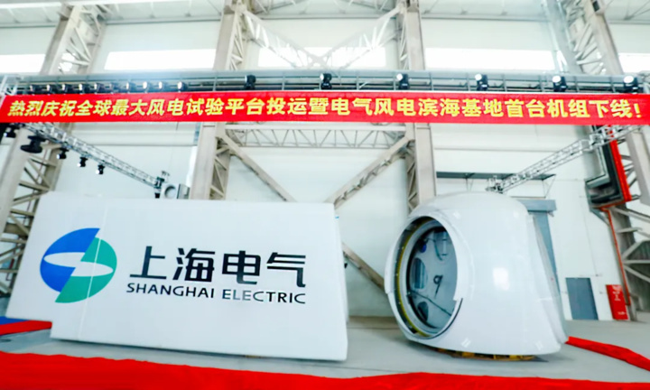 日前,全球最大風(fēng)電試驗(yàn)平臺(tái)——上海電氣風(fēng)電全功率平臺(tái)在上海電氣風(fēng)電濱?;赝哆\(yùn)。當(dāng)天,上海電氣風(fēng)電濱?;厥着_(tái)機(jī)組同時(shí)下線。